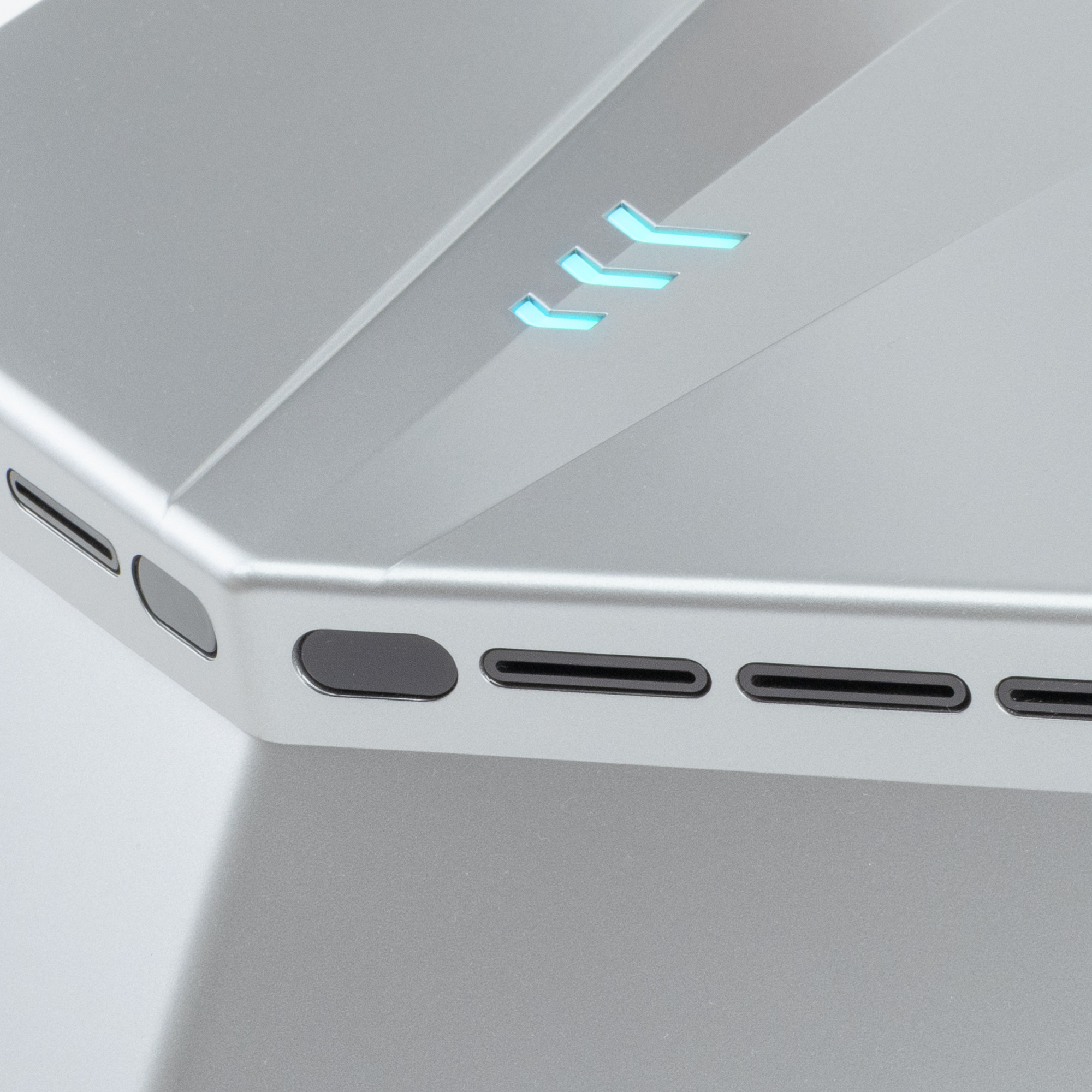 Дизайн сушилки выполнен в элегантном стиле. Воздуховодные отверстия размещены по корпусу под специальным углом, рассчитанным для комфортного расположения рук при их сушке. Сушилка оснащена световыми LED-индикаторами, обеспечивающими визуальную индикацию работы.
