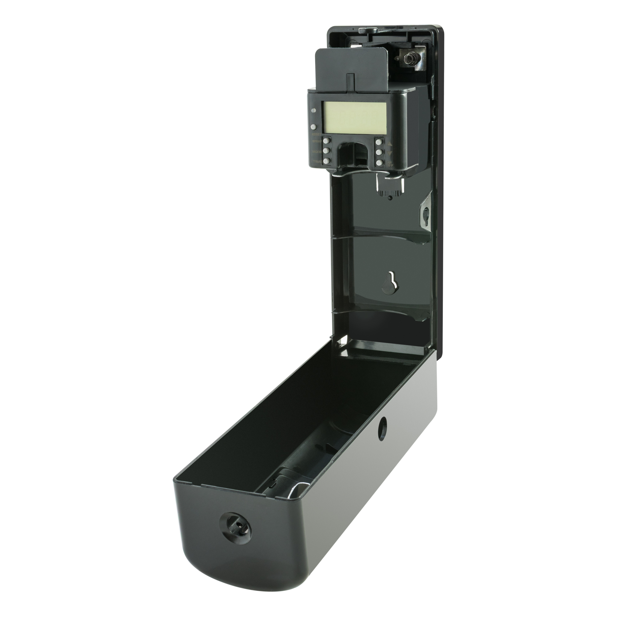 Корпус освежителя закрывается на ключ для предотвращения хищений баллонов с ароматизатором воздуха и/или батареек.