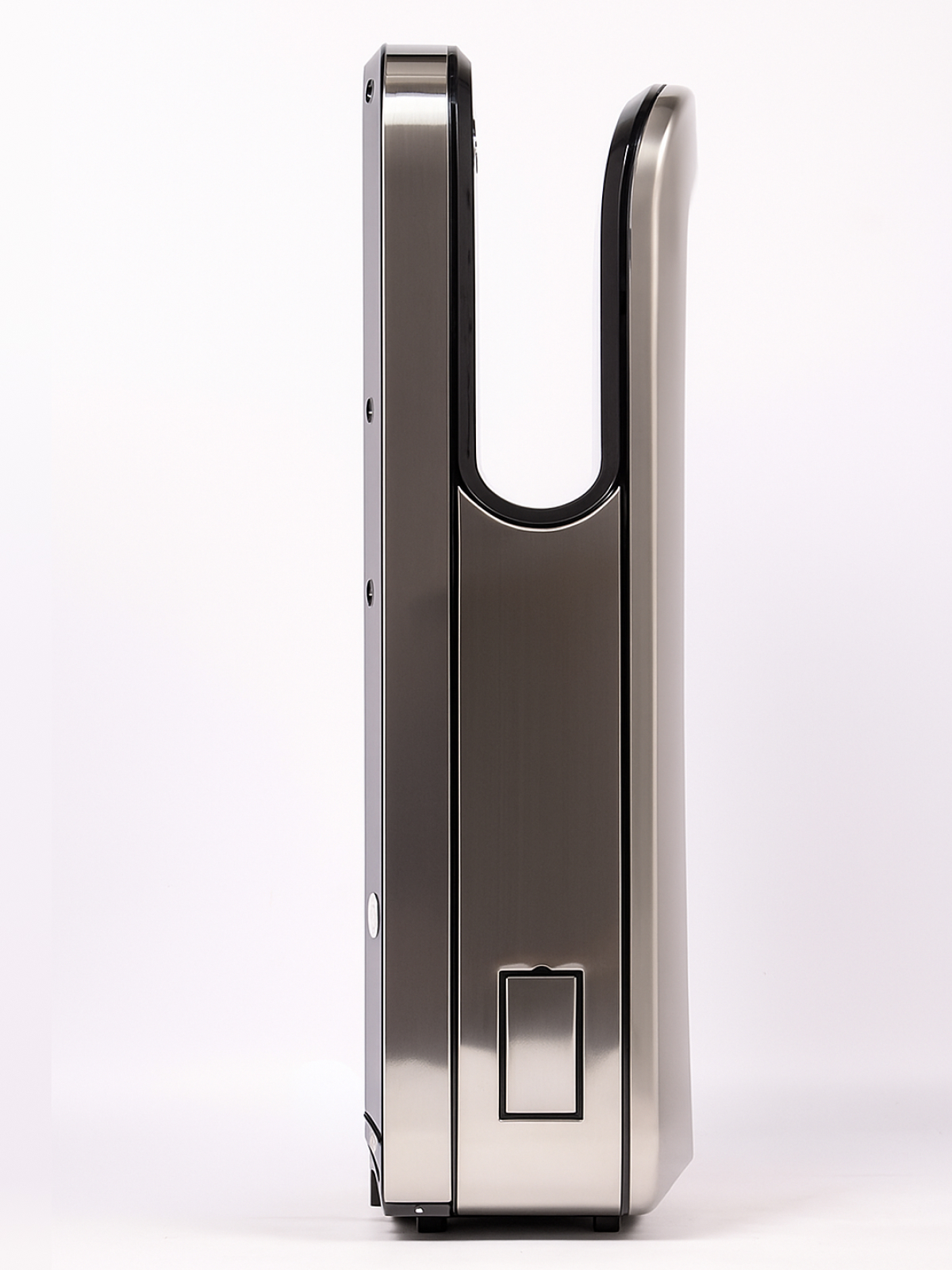Установлен инновационный двигатель –скорость воздушного потока составляет 150 м/сек, при номинальной его мощности 1650 Вт., при этом уровень шума всего 65 db. Благодаря этому руки становятся сухими менее чем за 5-7 секунд. В устройстве 2 скоростных и 2 температурных режима: горячий (принудительный) и автоматический, при котором сушилка сама определит необходимую комфортную температуру, подаваемую на руки, в зависимости от температуры окружающей среды.