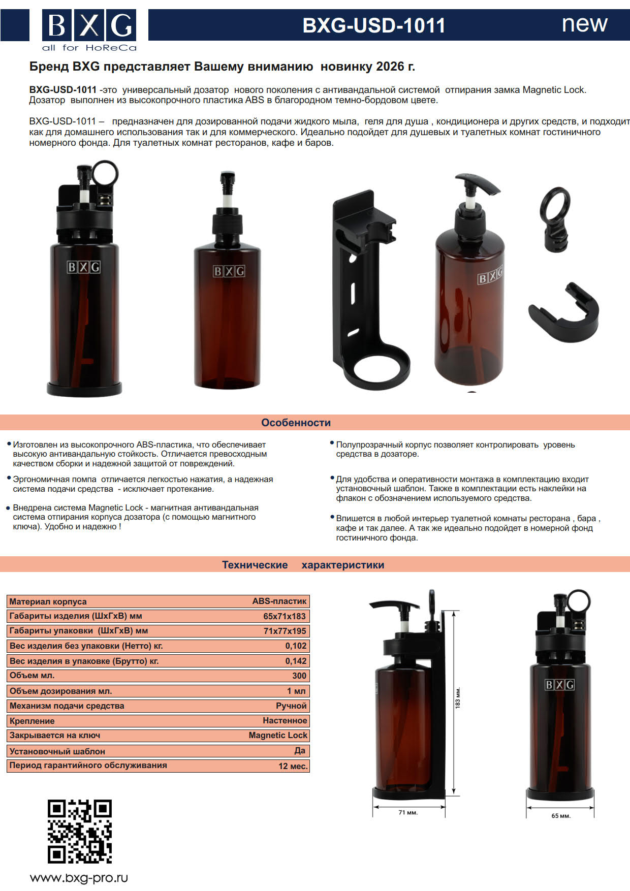 -Анонс Универсальный дозатор BXG-USD-1011. BXG-USD-1011 -это универсальный дозатор нового поколения с антивандальной системой отпирания замка Magnetic Lock.
