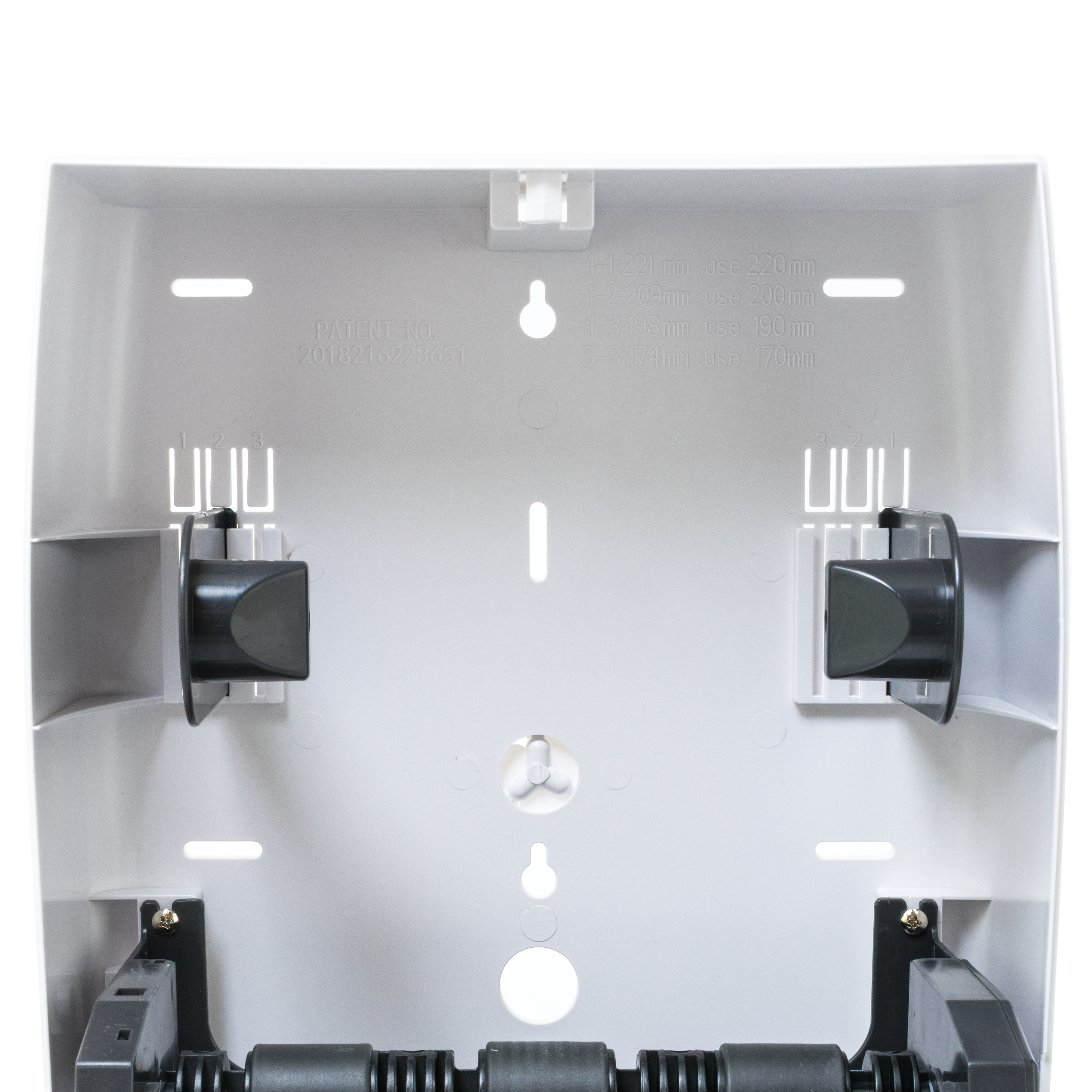 1. Система регулировки ширины рулона (от 17 см до 22 см) с помощью запатентованного механизма переключения втулок. Позволяет подобрать рулоны бумаги различных видов от любого производителя.