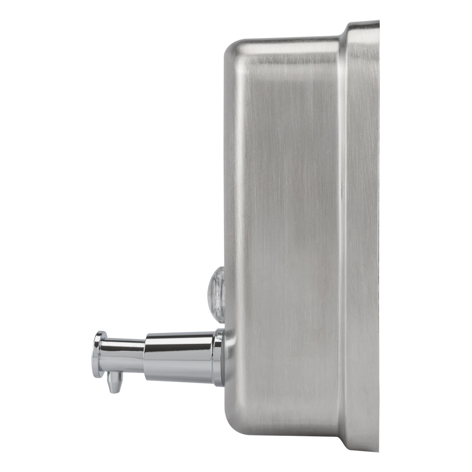 Выполнены из нержавеющей стали с матовым покрытием. Смотровое окно позволяет контролировать уровень жидкого мыла в дозаторе. Дозирующий механизм выполнен из латуни. Надежная и прочная система подачи исключает протекание. Обладает повышенной стойкостью к возникновению ржавчины.