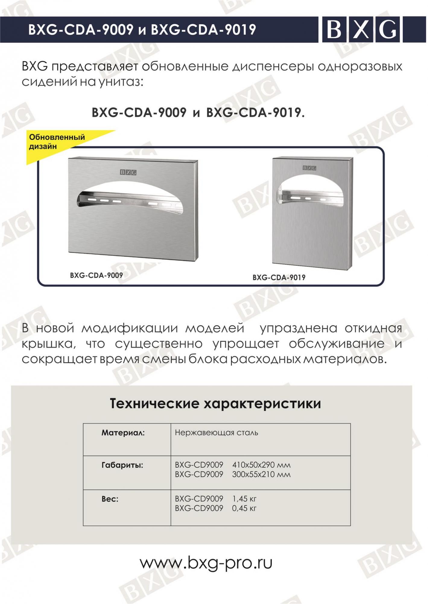BXG представляет обновленные диспенсеры одноразовых сидений на унитаз: BXG-CDA-9009 и BXG-CDA-9019.